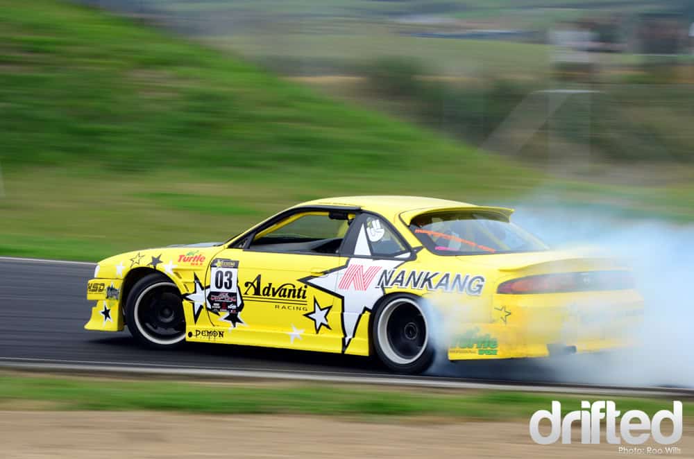 Andrew Redward is another driver that has had a few mechanical issues this season in his LS-powered FC3S I posted in part one. Luckily though he never sold his previous drift car, this Nissan Silvia, so after the LS2 managed to self destruct a spark plug he nipped home to get it! The old girl can still perform too; Andrew took out the no. 4 qualifying spot.