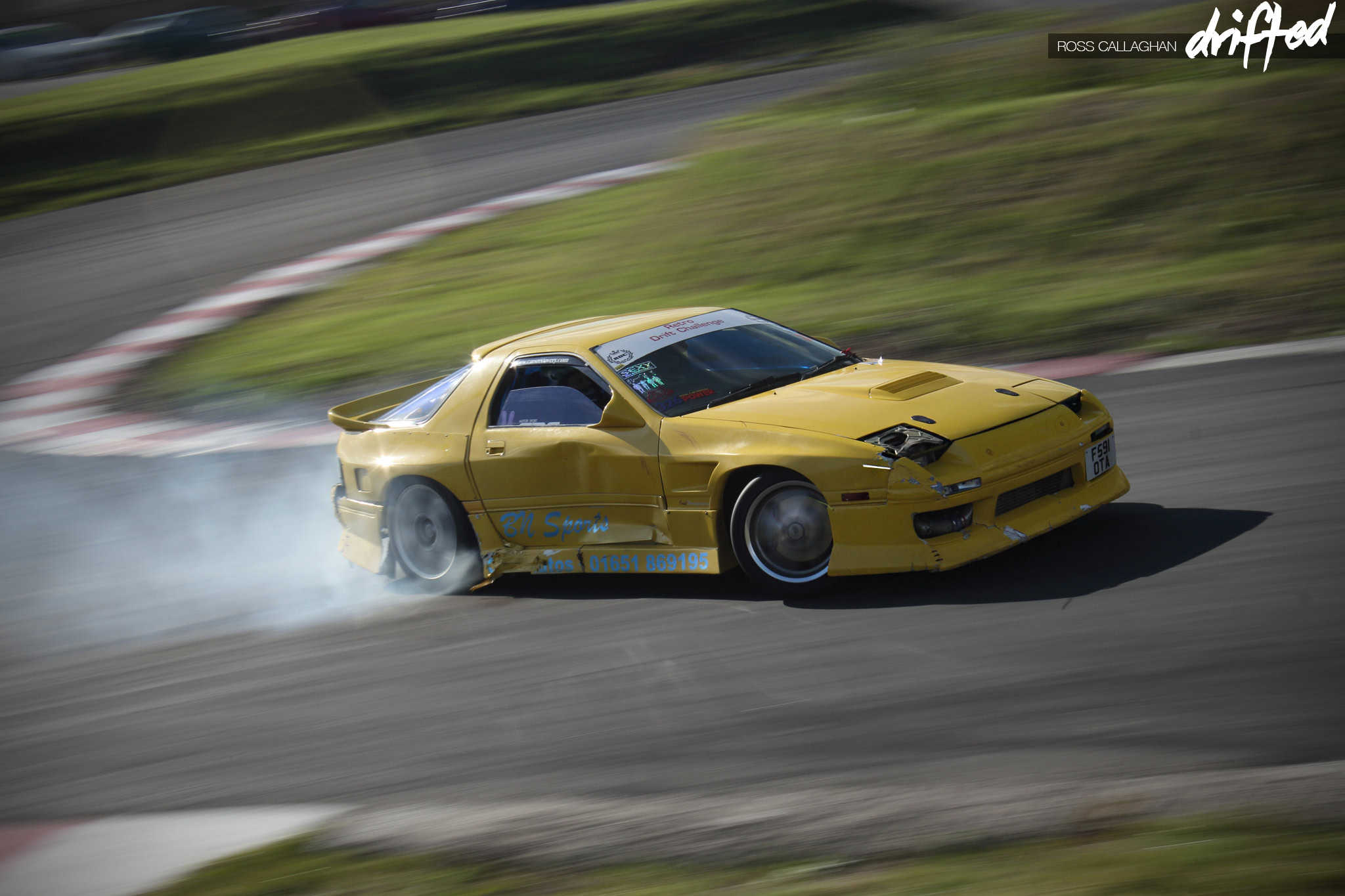 Stuart Lawson is an experienced drifter and Driftland regular. Competing in many competitions in the UK, he was straight into the swing of it in his FC3S. You can tell from this car’s bodywork that Stu can get a bit aggressive on track.