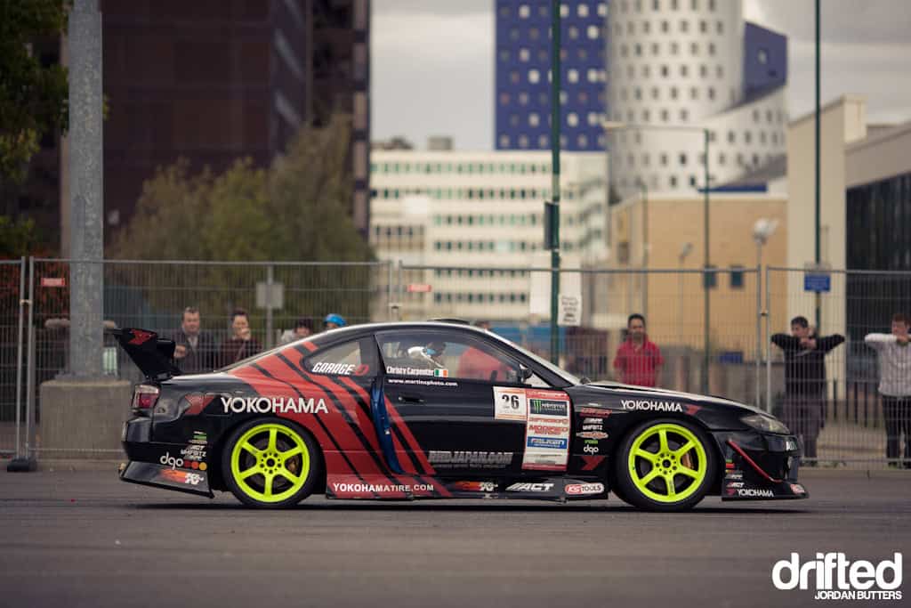 We were graced with the presence of yet another Formula Drift star in the form of Daijiro Yoshihara, who would be driving the Driftworks 2JZ S15 for the event, however it was, as is often the case, the Irish who dominated the event with their super-aggressive driving style.