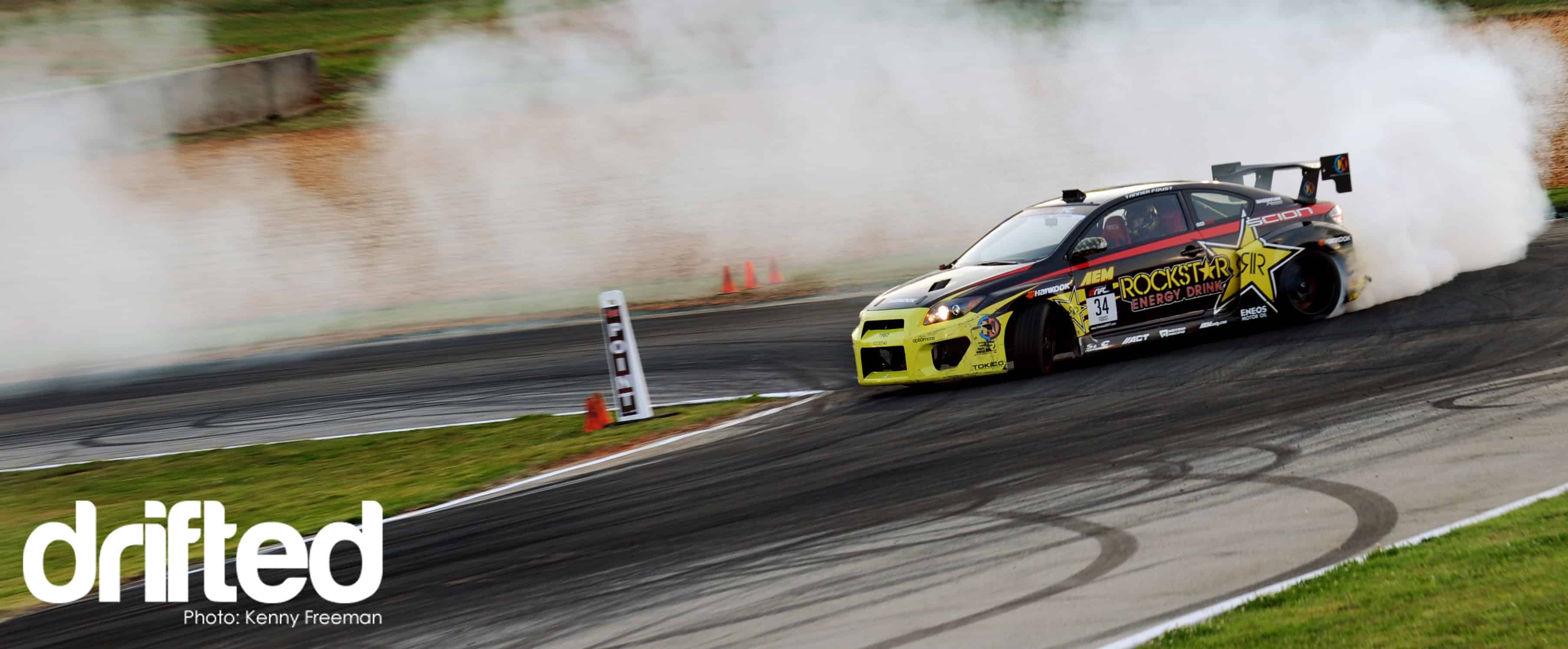 35 miles north of Atlanta there’s a town called Braselton, Georgia. Road Atlanta, a world class 2.54-mile, 12-turn road course sits in the middle of this small town. On the 10th turn, Formula Drift drivers begin their battle to the winners podium. The track is set up with a horse shoe turn where drivers must hit 3 clipping points. This track is fast, difficult and drivers can lose all their momentum in a single turn. Around the horseshoe, smoke, dirt and tire fly into the crowd as drivers whip their cars down the hill, ending up back where they came.